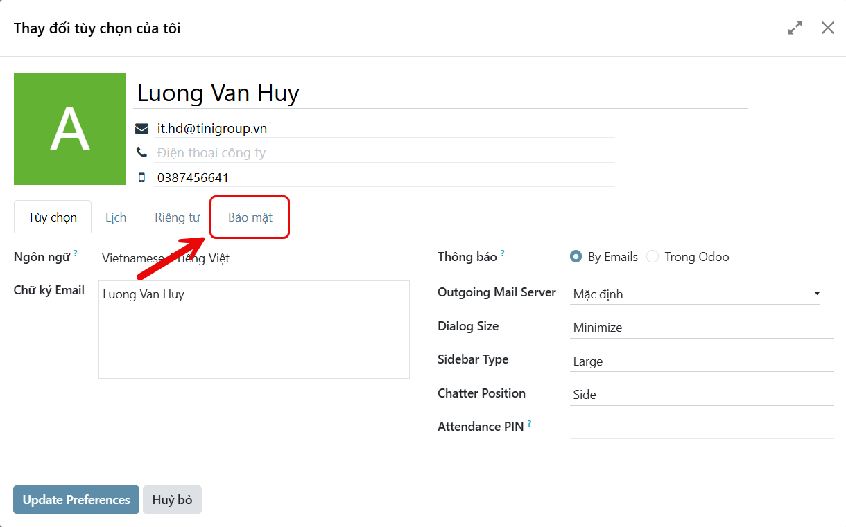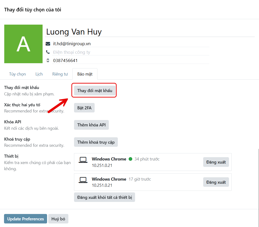 Trong quá trình sử dụng hệ thống Odoo, việc bảo mật tài khoản là yếu tố vô cùng quan trọng. Một trong những cách đơn giản nhưng hiệu quả nhất để bảo vệ dữ liệu là thay đổi mật khẩu định kỳ.
